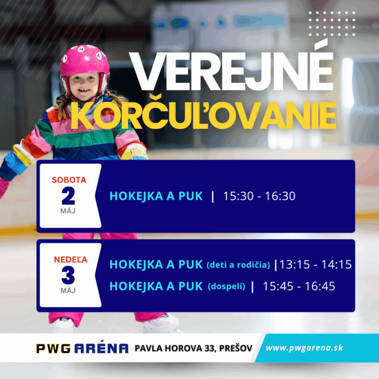 Požičanie aj brúsenie korčúľ je možné aj mimo uvedených hodín, prosím vyhľadajte personál PWG Arény.